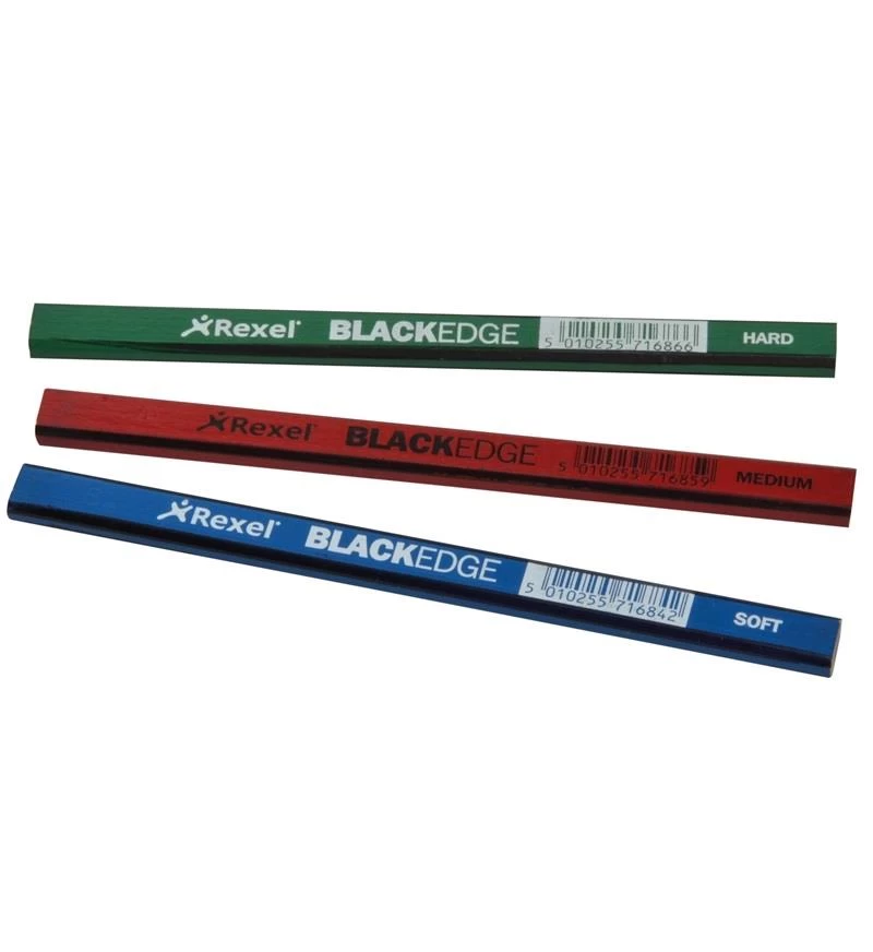 Carpenters Pencil of oblong section which can be sharpened to a chisel shaped edge. This eliminates the tendency of a pointed pencil to follow the grain. Top quality and traditional.